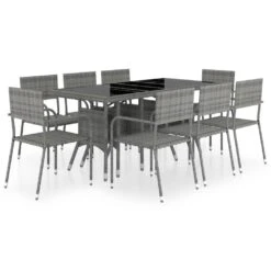 Set Comedor Jardín 9 Pzas Ratán Sintético Gris Antracita Y Gris VidaXL