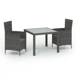 Set De Comedor De Jardín 3 Pzas Y Cojines Ratán Sintético Gris VidaXL