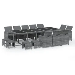 Set De Comedor Jardín 15 Pzas Con Cojines Ratán Sintético Gris VidaXL