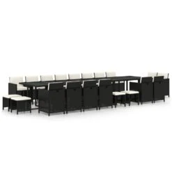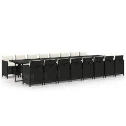 Set De Comedor Jardín 17 Pzas Con Cojines Ratán Sintético Negro VidaXL