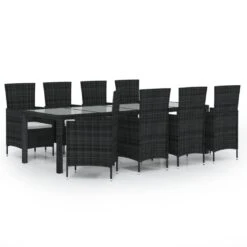 Set De Comedor Jardín 9 Pzas Con Cojines Ratán Sintético Negro VidaXL
