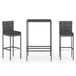 Set Muebles Bar Jardín 3 Piezas Y Cojines Ratán Sintético Gris VidaXL