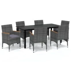 Set De Muebles Jardín 7 Pzas Con Cojines Ratán Sintético Gris VidaXL
