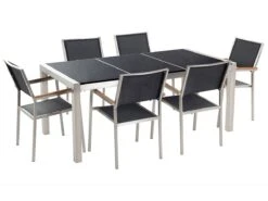 Conjunto De Comedor 6 Plazas De Metal/granito Negro/plateado GROSSETO