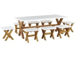 Conjunto De Comedor De Jardín De 8 Plazas De Cemento Blanco/madera Clara OLBIA