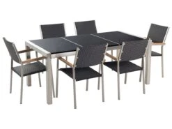Conjunto De Comedor 6 Plazas De Metal/granito/ratán Negro/plateado GROSSETO
