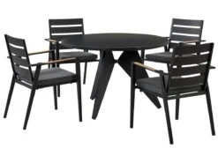 Conjunto De Comedor 4 Plazas De Metal Negro/gris/madera Clara OLMETTO/BUSSETO