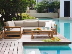 Conjunto De Sala De Estar Esquinero 4 Plazas Modular De Madera De Acacia Clara Derecho TIMOR