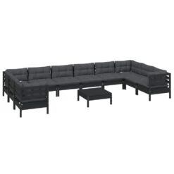 Muebles De Jardín 11 Pzas Con Cojines Negro Madera De Pino VidaXL
