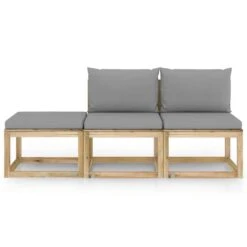 Juego De Muebles Jardín De 3 Piezas Con Cojines Grises VidaXL