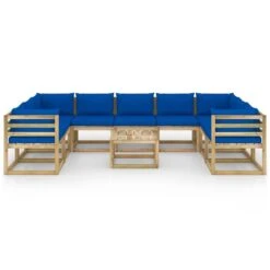Juego Muebles De Jardín 10 Pzas Y Cojines Madera De Pino Maciza VidaXL