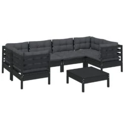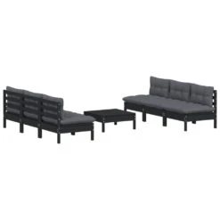 Muebles De Jardín 7 Pzas Con Cojines Negro Madera De Pino VidaXL