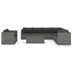 Set De Muebles De Jardín 10 Pzas Ratán Sintético Y Cojines Gris VidaXL