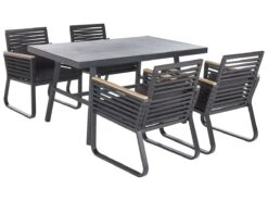 Conjunto De Jardín 4 Plazas De Metal Negro/madera Clara CANETTO