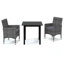 Juego Muebles Jardín 3 Pzas Madera Acacia Ratán Sintético Gris VidaXL