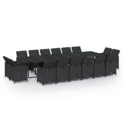 Set Comedor De Jardín 15 Pzas Con Cojines Ratán Sintético Negro VidaXL