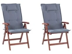Conjunto De 2 Sillas De Madera De Acacia Con Cojines Azules TOSCANA