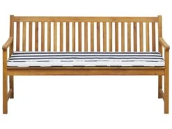 Clásico banco de jardín con cojín. Añade modernidad a tu zona exterior con este banco de estilo rústico. Está fabricado a partir de madera de acacia duradera y de alta calidad. Tiene una capacidad para 3 personas. El cojín de asiento ofrece la máxima comodidad. Detalles: Tipo de Producto: Banco Estilo: Rústico Color: Madera clara Tonalidad: Gris pardo Tipo de material: Madera maciza Material principal: Madera de acacia con certificado FSC® Material adicional: Poliéster Composición del Material: 100% Poliéster Densidad de espuma del asiento: 18 kg/m3 Dimensiones: Altura del apoyabrazos: 20 cm Profundidad: 61 cm Espesor del asiento: 5 cm Altura del asiento: 45 cm Ancho: 160 cm Altura: 88 cm Superficie del asiento: 152×54 cm Peso: 20 kg Capacidad de peso: 480 kg La oferta incluye: 1 x Banco, 1 x Cojín del asiento Ventajas: Las tiras ofrecen una fijación segura, Increíblemente suave, Ancha superficie del asiento, Perfecto para todo tipo de exterior, No requiere mantenimiento regular, Materiales de la más alta calidad, Ideal para uso en interiores y exteriores, Resistencia UV 5 (ISO 105-B02, Fundas de cojines impermeables y extraíbles Información de montaje: Requiere montaje completo. 20-40 min. Información adicional: El producto viene con un libro de cuidados detallado para ayudarte a mantener tus muebles en las mejores condiciones durante muchos años. Consulta estos consejos para garantizar el mantenimiento adecuado de tus muebles nuevos – encontrarás las instrucciones de mantenimiento junto con el manual de montaje. Texto de resistencia: Gracias a su resistencia al agua, puedes utilizar el producto al aire libre y dejarlo a la intemperie durante lluvias ligeras. Si no es posible guardarlo en un lugar cerrado y protegido, recomendamos utilizar una funda protectora. La exposición prolongada a la humedad puede provocar daños en el mueble. Resistencia: Agua ligera / humedad Consejos de mantenimiento: Madera de acacia: 1.Los muebles con acabado de aceite deben volverse a engrasar antes de ponerlos en uso y al menos una vez al año, especialmente en el clima húmedo 2.Limpiar con un limpiador suave y un paño suave en la dirección de la veta. Secar con un paño inmediatamente después de limpiar 3.Durante el invierno o en condiciones climáticas adversas, utilice una funda protectora o guarde los muebles en el interior. Poliéster: 1.Lavar a mano o seleccionar un ciclo de lavado de lana (30 ° C, a menos que el fabricante especifique lo contrario. Lavar del revés con la cremallera cerrada 2.Cuando no esté en uso, manténgalo en un lugar limpio y seco para protegerlo de las condiciones atmosféricas 3.No secar en secadora y no planchar.