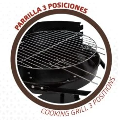 - Funcionalidad: parrilla con altura regulable en tres posiciones y bandeja auxiliar inferior para colocar utensilios