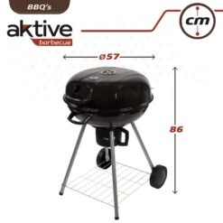 - Barbacoa de carbón portátil redonda color negro Aktive Barbecue