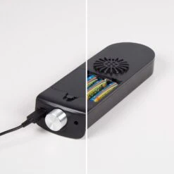- Baja emisión de humo: cuenta con sistema de ventilación eficiente que funciona con 4 pilas AA (n/incluidas o con cargador USB (cable n/incluido