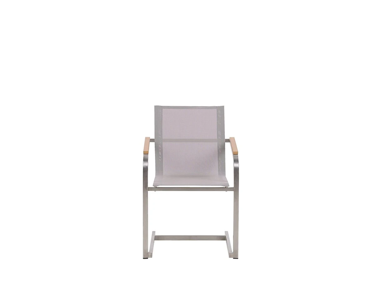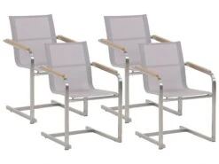 Juego de sillas de exterior. Este conjunto de 4 sillas de jardín es ideal para su uso en exteriores e interiores. Las líneas clásicas y la forma simple ofrecen un estilo versátil que combina bien con cualquier estilo de decoración. El estilo cantilever complementado con los reposabrazos cubiertos de madera de contrachapado garantizan un asiento cómodo. Las sillas están fabricadas con materiales resistentes de fácil mantenimiento. Combínalas con la mesa de la misma colección y crea el conjunto de jardín perfecto. Detalles: Tipo de Producto: Silla de jardín Estilo: Moderno Color: Beige Tipo de material: Metal Material principal: Poliéster Material adicional: Madera contrachapada Material de las patas: Acero Material del asiento: Tejido Composición del Material: 90% PVC Apoyabrazo: Sí Acabado: Cepillado Plegable: No Apilable: Sí Dimensiones: Altura del apoyabrazos: 64 cm Profundidad: 55 cm Altura del asiento: 45 cm Ancho: 56 cm Altura: 85 cm Superficie del asiento: 44×43 cm Peso: 6 kg Capacidad de peso: 150 kg La oferta incluye: 4 x Silla Ventajas: Perfecto para todo tipo de exterior, Materiales de la más alta calidad, Ideal para uso en interiores y exteriores, Resistencia UV 5 (ISO 105-B02, Patas con tapas anti-deslizantes, Apilable, ahorra espacio Información de montaje: No requiere montaje Información adicional: El producto viene con un libro de cuidados detallado para ayudarte a mantener tus muebles en las mejores condiciones durante muchos años. Consulta estos consejos para garantizar el mantenimiento adecuado de tus muebles nuevos – encontrarás las instrucciones de mantenimiento junto con el manual de montaje. Texto de resistencia: El producto es resistente al agua, lo que significa que no se dañará expuesto a la lluvia o en contacto con otros líquidos. Puede dejarlo al aire libre incluso durante fuertes lluvias o humedad. Durante la temporada de invierno es recomendable almacenar el producto en el interior o bajo una cubierta impermeable. Resistencia: Agua Consejos de mantenimiento: Acero inoxidable: 1.Limpiar solo con agentes de limpieza suaves. No utilice limpiadores alcalinos o ácidos 2.Las lluvias ácidas, el agua salada y las tormentas de arena pueden dañar la capa protectora 3.Durante el invierno, utilice una funda protectora o guarde los muebles en el interior 4.Durante la lluvia, se recomienda utilizar una funda protectora. Poliéster: 1.Limpiar con champú seco y una esponja húmeda o un limpiador suave 2.Cuando no esté en uso, manténgalo en un lugar limpio y seco para protegerlo de las condiciones atmosféricas 3.Aspire con un accesorio adecuado.