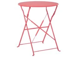 Juego de balcón de una mesa y 2 sillas. Este conjunto de balcón constituido por una mesa y 2 sillas es ideal para cualquier patio trasero o área exterior. Está fabricado a partir de acero que permite el uso en exteriores. Todos los componentes del juego son ligeros y plegables. Detalles: Tipo de Producto: Conjunto bistro Estilo: Moderno Color: Rojo Tipo de material: Acero Material principal: Acero Material de la superficie: Acero Acabado: Revestimiento en polvo Dimensiones: Dimensiones de la silla: 41x46x80 cm Dimensiones de la mesa de centro: 60x60x71 Altura del asiento: 45 cm Peso: 13 kg Capacidad de peso de la silla: 130 kg Capacidad de peso de la mesa: 60 kg La oferta incluye: 1 x Mesa, 2 x Silla Ventajas: Perfecto para todo tipo de exterior, Combina con todo tipo de decoración, No requiere mantenimiento regular, Plegable para un fácil almacenamiento, Patas con tapas antideslizantes de seguridad Información de montaje: No requiere montaje Texto de resistencia: El producto es resistente al viento, por lo que no debe volcarse ni perder estabilidad con ráfagas de viento. Resistencia: Viento Consejos de mantenimiento: Acero: 1.Durante el invierno, utilice una funda protectora o guarde los muebles en el interior 2.Durante la lluvia, se recomienda utilizar una funda protectora 3.Limpiar solo con agentes de limpieza suaves. No utilice limpiadores alcalinos o ácidos 4.Las lluvias ácidas, el agua salada y las tormentas de arena pueden dañar la capa protectora.