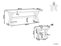 Conjunto de exteriores con base de madera de acacia . Si estás buscando la forma de convertir tu jardín en el mejor lugar para reunir a tu familia y amigos, este conjunto de jardín es justo lo que necesitas. La mesa ofrece espacio para hasta 8 personas. Todos los elementos están fabricados a partir de materiales resistentes al agua y a la intemperie: la mesa y los asientos, de cemento reforzado y, las bases, de madera de acacia. Este juego de jardín destaca para espacios de diseño moderno o minimalista pero combina bien con todo tipo de exteriores. Detalles: Tipo de Producto: Conjunto de comedor Estilo: Moderno Color: Blanco Tipo de material: Cemento Material principal: Cemento reforzado con fibra Material adicional: Madera de acacia Material de la superficie: Cemento Acabado: Laminado Dimensiones: Dimensiones de la silla: 40x51x45 cm Altura del asiento: 45 cm Dimensiones de la mesa: 200x100x75 cm Peso: 90 kg Capacidad de peso de la silla: 120 kg Capacidad de peso de la mesa: 125 kg La oferta incluye: 1 x Mesa, 8 x Taburete Ventajas: Perfecto para cenar en grupos más grandes, Acabado de hormigón para aspecto industrial, Perfecto para todo tipo de exterior, Ideal para uso en interiores y exteriores, Materiales de la más alta calidad Información de montaje: Requiere montaje completo. Más de 60 min. Información adicional: Dependiendo de la humedad del aire, los muebles de concreto pueden tener grietas, agujeros o cambiar de color. Es una característica natural del material y no afecta su calidad. El producto viene con un libro de cuidados detallado para ayudarte a mantener tus muebles en las mejores condiciones durante muchos años. Consulta estos consejos para garantizar el mantenimiento adecuado de tus muebles nuevos – encontrarás las instrucciones de mantenimiento junto con el manual de montaje. Texto de resistencia: Gracias a su resistencia al agua, puedes utilizar el producto al aire libre y dejarlo a la intemperie durante lluvias ligeras. Si no es posible guardarlo en un lugar cerrado y protegido, recomendamos utilizar una funda protectora. La exposición prolongada a la humedad puede provocar daños en el mueble. Resistencia: Agua ligera / humedad Consejos de mantenimiento: Cemento reforzado con fibra: 1.Durante el invierno utilice una funda protectora o guarde los muebles en el interior 2.Para evitar manchas, no utilice detergentes cremosos o detergentes con ácidos o aceites. Madera de acacia: 1.Los muebles con acabado de aceite deben volverse a engrasar antes de ponerlos en uso y al menos una vez al año, especialmente en el clima húmedo 2.Limpiar con un limpiador suave y un paño suave en la dirección de la veta. Secar con un paño inmediatamente después de limpiar 3.Durante el invierno o en condiciones climáticas adversas, utilice una funda protectora o guarde los muebles en el interior.