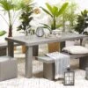 Conjunto de jardín de hormigón mesa en forma de U y 6 taburetes. Este conjunto de jardín cambiará tu manera de pensar sobre el cemento. Constituido por una mesa y 6 taburetes, las líneas limpias añaden un toque industrial a tu exterior. Fabricada a partir de cemento reforzado con un marco de acero, la mesa es robusta e increíblemente elegante. El material elegido es resistente a las manchas y de fácil mantenimiento. La forma minimalista combina perfectamente con el aspecto sencillo del hormigón. Detalles: Tipo de Producto: Conjunto de comedor Estilo: Industrial Color: Gris Tipo de material: Cemento Material principal: Cemento reforzado con fibra Material adicional: Acero Material de la superficie: Cemento Acabado: Mate Dimensiones: Dimensiones de la silla: 40x40x45 cm Altura del asiento: 45 cm Dimensiones de la mesa: 180x90x78 cm Peso: 122 kg Capacidad de peso de la silla: 120 kg Capacidad de peso de la mesa: 60 kg La oferta incluye: 1 x Mesa, 6 x Taburete Ventajas: Acabado de hormigón para aspecto industrial, Fabricación sólida y precisa, Ideal para uso en interiores y exteriores, Construcción muy estable, Mantenimiento sencillo Información de montaje: Requiere montaje de las patas. 20-40 min. Información adicional: Ten en cuenta que cada modelo puede diferir ligeramente de la presentación en la imagen. La disposición de colores y piezas de material puede ser diferente. Esto se considera como la característica del producto, no su defecto. Dependiendo de la humedad del aire, los muebles de concreto pueden tener grietas, agujeros o cambiar de color. Es una característica natural del material y no afecta su calidad. Texto de resistencia: Gracias a su resistencia al agua, puedes utilizar el producto al aire libre y dejarlo a la intemperie durante lluvias ligeras. Si no es posible guardarlo en un lugar cerrado y protegido, recomendamos utilizar una funda protectora. La exposición prolongada a la humedad puede provocar daños en el mueble. Resistencia: Agua ligera / humedad Consejos de mantenimiento: Cemento reforzado con fibra: 1.Durante el invierno utilice una funda protectora o guarde los muebles en el interior 2.Para evitar manchas, no utilice detergentes cremosos o detergentes con ácidos o aceites.
