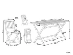Conjunto de jardín de madera de acacia con estilo rústico. A todos nos gusta pasar los días soleados y cálidas noches de verano en el jardín disfrutando de estos momentos maravillosos rodeados de familia y amigos. Este conjunto de jardín viene con 6 prácticas y cómodas sillas. La mesa rectangular es un sitio perfecto para hacer una barbacoa o tomar un café. El conjunto está elaborado de madera de acacia engrasada, lo que garantiza su durabilidad y facilidad de limpiar. Detalles: Tipo de Producto: Conjunto de comedor Estilo: Rústico Color: Madera oscura Tipo de material: Madera maciza Material principal: Madera de acacia Material adicional: Poliéster Material de la superficie: Madera maciza Composición del Material: 100% Poliéster Acabado: Aceitado Densidad de espuma del asiento: 18 kg/m3 Dimensiones: Dimensiones de la silla: 46x50x90 cm Espesor del asiento: 3 cm Altura del asiento: 40 cm Dimensiones de la mesa: 140x75x74 cm Peso: 30 kg Capacidad de peso de la silla: 110 kg Capacidad de peso de la mesa: 110 kg La oferta incluye: 1 x Mesa, 6 x Silla, 6 x Cojines del asiento Ventajas: Las tiras ofrecen una fijación segura, Diseño atemporal, Resistencia UV 4 (ISO 105-B02, Plegable para un fácil almacenamiento, Fundas extraíbles Información de montaje: Requiere montaje parcial. 20-40 min. Información adicional: Por favor, ten en cuenta que la madera es un producto natural, y cada pieza puede presentar ligeras variaciones. Las diferencias en el color o la textura, como las arrugas u otras características naturales, no se consideran un defecto ni tampoco una base de reclamación, El producto viene con un libro de cuidados detallado para ayudarte a mantener tus muebles en las mejores condiciones durante muchos años. Consulta estos consejos para garantizar el mantenimiento adecuado de tus muebles nuevos – encontrarás las instrucciones de mantenimiento junto con el manual de montaje. Texto de resistencia: Gracias a su resistencia al agua, puedes utilizar el producto al aire libre y dejarlo a la intemperie durante lluvias ligeras. Si no es posible guardarlo en un lugar cerrado y protegido, recomendamos utilizar una funda protectora. La exposición prolongada a la humedad puede provocar daños en el mueble. Resistencia: Agua ligera / humedad Consejos de mantenimiento: Madera de acacia: 1.Durante el invierno o en condiciones climáticas adversas, utilice una funda protectora o guarde los muebles en el interior 2.Los muebles con acabado de aceite deben volverse a engrasar antes de ponerlos en uso y al menos una vez al año, especialmente en el clima húmedo 3.Limpiar con un limpiador suave y un paño suave en la dirección de la veta. Secar con un paño inmediatamente después de limpiar.