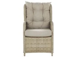 Juego de mimbre reclinable . Relájate en este cómodo jardín para dos. Consiste en dos sillones de respaldo alto combinados con reposapiés a juego y cojines gruesos y ofrece un lugar acogedor para descansar durante las noches cálidas de verano. Viene con una pequeña mesa de centro con tapa de vidrio templado y un estante adicional para libros, revistas o decoraciones. Con el marco fabricado en aluminio resistente y un cuerpo de ratán sintético duradero, este conjunto soporta condiciones climáticas adversas. Las piezas son fáciles de limpiar y los cojines de los asientos se pueden lavar y refrescar gracias a las fundas con cremallera. El conjunto se ve perfecto combinado con accesorios tradicionales o boho. Detalles: Tipo de Producto: Conjunto longue Estilo: Boho Color: Beige Tonalidad: Gris pardo Tipo de material: Ratán sintético Material principal: Ratán sintético Material adicional: Aluminio Material de la superficie: Vidrio Composición del Material: 100% Poliéster Acabado: Revestimiento en polvo Densidad de espuma del asiento: 25 kg/m3 Dimensiones: Dimensiones del sillón: 106x61x68 Dimensiones de la mesa de centro: 46x47x47 Dimensiones del reposapies: 44x52x59 cm Espesor del asiento: 10 cm Altura del asiento: 40 cm Peso: 46 kg Capacidad de peso de la mesa: 30 kg Capacidad de peso por persona: 100 kg La oferta incluye: 2 x Sillón, 2 x Taburete, 1 x Mesa de centro, 2 x Cojines del asiento, 2 x Cojín del respaldo, 2 x Cojín Ventajas: Práctico reposapiés, Perfecto para todo tipo de exterior, Muy fácil de conservar, Resistente a las bajas y altas temperaturas, Resistencia UV 5 (ISO 105-B02, Fundas extraíbles, Tablero en vidrio templado de seguridad, Respaldo ajustable Información de montaje: No requiere montaje Información adicional: El producto viene con un libro de cuidados detallado para ayudarte a mantener tus muebles en las mejores condiciones durante muchos años. Consulta estos consejos para garantizar el mantenimiento adecuado de tus muebles nuevos – encontrarás las instrucciones de mantenimiento junto con el manual de montaje. Texto de resistencia: Gracias a su resistencia al agua, puedes utilizar el producto al aire libre y dejarlo a la intemperie durante lluvias ligeras. Si no es posible guardarlo en un lugar cerrado y protegido, recomendamos utilizar una funda protectora. La exposición prolongada a la humedad puede provocar daños en el mueble. Resistencia: Agua ligera / humedad Consejos de mantenimiento: Ratán sintético: 1.Se recomienda utilizar una funda protectora para la temporada de invierno o, si es posible, para mantener los muebles secos y frescos en el interior 2.Limpiar con detergentes a base de jabón. No utilizar limpiadores químicos corrosivos 3.Los utensilios o accesorios de vidrio pueden sobrecalentar la superficie 4.Para alargar la vida útil del mueble, protéjalo de la exposición directa al sol. Poliéster: 1.Lavar a mano únicamente, usar agua fría y un detergente suave 2.Cuando no esté en uso, manténgalo en un lugar limpio y seco para protegerlo de las condiciones atmosféricas 3.No secar en secadora ni planchar. Vidrio templado: 1.Secar después de la lluvia o la nieve. Durante el invierno, utilice una funda protectora o guarde los muebles en el interior 2.Para evitar rayones, no use un limpiador cremoso 3.Limpiar con un detergente suave o acondicionador de vidrio con un paño suave. Secar después de limpiar.