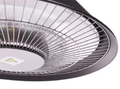 Calentador de exterior. Esta estufa eléctrica de exterior con forma de lámpara es, a su vez, decorativa y funcional. La luz generada se asemeja a la de los rayos de sol. El interruptor ubicado en la parte superior del calefactor permite apagar el dispositivo. Detalles: Tipo de Producto: Estufa de patio Color: Negro Tipo de material: Metal Material principal: Aluminio Código de protección IP: IP 44 (Impermeable Consumo de potencia: 1500 W Montaje: Colgante Dimensiones: Longitud del cable: 185 cm Profundidad: 44 cm Ancho: 44 cm Altura: 61 cm Peso: 3 kg La oferta incluye: 1 x Estufa de exterior Ventajas: Perfecto para todo tipo de exterior, Cumple con los estándares PAH, RoHS y SAA, Certificados GS, CE, CB, Ideal para uso al aire libre Información de montaje: Requiere montaje parcial. 20-40 min. Información adicional: La estufa requiere hasta 5 minutos para alcanzar su máxima potencia de calentamiento, Distancia mínima: 25 cm de la pared, 50 cm del techo, 180 cm del suelo, La distancia óptima de calentamiento es de 2 metros. Aunque se puede sentir el calor a mayor distancia, se recomienda colocar el dispositivo lo más cerca posible y así aprovechar al máximo su potencial. Consejos de mantenimiento: Aluminio: 1.Antes de comenzar a limpiar, desconecta el enchufe. No toques la estufa cuando esté caliente o no se haya enfriado por completo 2.Limpiar con un paño húmedo, 3.No meter en el agua.