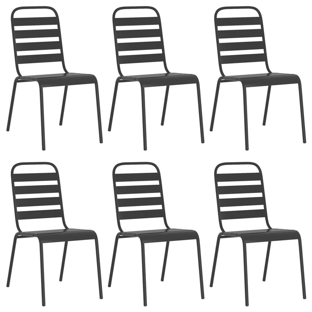 Este moderno conjunto de comedor de jardín, con un diseño elegante y contemporáneo, es una opción perfecta para relajarse en el jardín. Material resistente: El acero es un material muy duro y resistente. Ofrece solidez y estabilidad. El recubrimiento en polvo y el revestimiento electrónico sobre el acero crean una capa protectora contra el desgaste y la corrosión.Estructura estable: La estructura de acero con recubrimiento en polvo y electroforesis garantiza la solidez y estabilidad del conjunto de comedor.Función apilable: Las sillas de comedor son apilables para ahorrar espacio cuando no se usan.Práctica mesa: La resistente superficie de la mesa de comedor es perfecta para colocar comidas, bebidas y artículos decorativos.Diseño de listones: La mesa de comedor para jardín posee un diseño de malla y tiene un aspecto sencillo y atemporal. Sirve para balcones, porches, jardines, patios, etc. Nota:Para asegurarte de que tus muebles de exterior se mantengan hermosos, recomendamos protegerlos con una funda impermeable. Color: Gris antracitaMaterial: Acero (tratado con electroforesis y recubrimiento en polvoMesa:Dimensiones: 100 x 100 x 71 cm (largo x ancho x altoSilla de jardín:Dimensiones: 42 x 64 x 84 cm (ancho x profundo x altoDimensiones del asiento: 42 x 38 cm (ancho x profundoAltura del asiento desde el suelo: 42 cmMáx. capacidad de carga (por asiento: 110 kgRequiere montaje: SíLa entrega incluye:1 x Mesa6 x Sillas de jardín