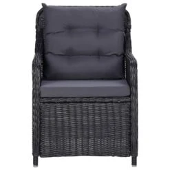 ¡Disfruta de una buena comida o cena en el espacio al aire libre de tu casa con este juego de comedor para jardín! Con un diseño elegante, ¡se convertirá en el centro de atención del jardín o patio! El práctico juego de comedor para exterior tiene una estructura de acero, por lo que es fuerte y robusto. Las sillas de jardín están hechas de ratán PE, resistente al agua y que no necesita mantenimiento, por lo que son perfectas para usar al aire libre. La forma ergonómica y los cojines acolchados y extraíbles con relleno de espuma proporcionan el confort definitivo. Las fundas de cojines y almohadones son de poliéster, apenas necesitan cuidados y se pueden quitar fácilmente para lavarlas. Asimismo, la lisa superficie de vidrio se limpia fácilmente con un paño húmedo y es perfecta para colocar comida, bebida y otros artículos decorativos. Nota: Para prolongar la vida de tus muebles de exterior, te recomendamos que los protejas con una funda impermeable. Mesa:Color: NegroMaterial: Acero con recubrimiento en polvo, vidrioDimensiones: 80 x 80 x 74 cm (largo x ancho x altoSilla:Color de la silla: NegroColor de cojín: Gris oscuroMaterial de la silla: Ratán PE, acero con recubrimiento en polvoMaterial del cojín: 100% poliésterDimensiones de la silla: 64 x 65 x 90 cm (ancho x profundo x altoAnchura del asiento: 54 cmProfundidad del asiento: 49 cmAltura del asiento desde el suelo sin cojín: 41 cmAltura del reposabrazos desde el suelo: 54 cmResistente a la intemperieRequiere montaje: SíLa entrega contiene:1 x Mesa4 x Silla4 x Cojines de asiento4 x Cojines trasero