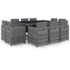 ¡Este juego de comedor de jardín exquisitamente diseñado está destinado a ser el foco de atención de tu jardín o patio! La estructura de acero hace que la mesa y las sillas sean robustas y estables. Como el conjunto también es ligero, todos los elementos son fáciles de mover. Asimismo, la lisa superficie de vidrio se limpia fácilmente con un paño húmedo y es perfecta para colocar comida, bebida y otros artículos decorativos. Las sillas de jardín están fabricadas con ratán de PE, resistente a la intemperie y a los rayos UV. Además, los reposapiés también otorgan un plus de comodidad a los taburetes. Nota: Para alargar la vida de tus muebles de exterior, te recomendamos limpiarlos regularmente y no dejarlos al aire libre sin protección innecesariamente.Limpieza: Usa una solución de jabón suaveAlmacenamiento: Si es posible, guárdala en un lugar fresco y seco en el interior. Si el producto se almacena en el exterior, protégelo con una cubierta impermeable. Limpia y seca el exceso de agua o nieve de las superficies planas después de una lluvia o nevada. Permite la ventilación para evitar daños relacionados con la humedad. Mesa:Color: NegroMaterial: Acero con recubrimiento en polvo, vidrioDimensiones: 200 x 100 x 74 cm (largo x ancho x altoGrosor del vidrio: 5 mmSilla:Color: NegroMaterial: Ratán PE, acero con recubrimiento en polvoDimensiones: 66,5 x 53,5 x 90 cm (ancho x profundo x altoAncho del asiento: 53.5 cmProfundidad del asiento: 46 cmAltura del asiento: 42 cmReposabrazos: NoRequiere montaje: SíLa entrega contiene:1 x Mesa8 x Silla
