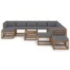 Este juego de muebles de jardín es una excelente opción para relajarte y disfrutar del buen tiempo, echar una siesta o charlar con tu familia o amigos. El conjunto de jardín está hecho de madera maciza de pino, lo que lo hace robusto y estable. ¡Puedes combinarlo con otros segmentos modulares para crear tus propias configuraciones de set de salón de jardín personal! Nota: Para prolongar la vida de tus muebles de exterior, te recomendamos que los protejas con una funda impermeable. Color del cojín: GrisMaterial: Madera maciza de pino, tela (100% poliésterDimensiones del sofá medio/esquinero: 70 x 70 x 67 cm (ancho x profundo x altoDimensiones del reposapiés: 70 x 70 x 30 cm (ancho x profundo x altoDimensiones del cojín del asiento: 70 x 70 x 8 cm (largo x ancho x grosorDimensiones del cojín de respaldo/lateral: 70 x 40 x 8 cm (largo x ancho x grosorRequiere montaje: SíMáx. capacidad de carga (por asiento: 110 kgLa entrega contiene:3 x Sofás centrales2 x Sofá esquinero1 x Reposapiés5 x Cojines de asiento5 x Cojines trasero/lateral