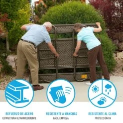 - Alta resistencia a la intemperie, uso ideal para 8 personas en interior o exterior, la mesa y los bancos van en una única estructura de plegado compacto plano