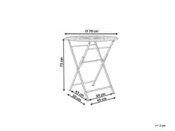 Mesa de exterior. Añade un toque romántico a tu zona exterior con esta mesa de balcón. Está fabricada a partir de metal de alta calidad. El diseño inspirado en el estilo provenzal combina bien con su funcionalidad. Es plegable, lo que permite ahorrar espacio y facilita el transporte de una habitación a otra. Detalles: Tipo de Producto: Mesa de jardín Estilo: Retro Color: Rojo Tipo de material: Metal Material principal: Hierro Material de las patas: Metal Material de la superficie: Metal Forma: Redonda Acabado: Revestimiento en polvo Dimensiones: Ancho: 70 cm Longitud: 70 cm Altura: 75 cm Peso: 4 kg Capacidad de peso: 40 kg La oferta incluye: 1 x Mesa Ventajas: Estilo retro, Resistencia UV, Fabricación sólida y precisa, Plegable para un fácil almacenamiento, Compacto y perfecto para espacios limitados Información de montaje: No requiere montaje Texto de resistencia: Gracias al acabado especial, la superficie del producto es resistente a la oxidación. Esto significa que se puede utilizar en exteriores. Cuando el producto no esté en uso, se recomienda cubrirlo con una cubierta o colocarlo en un lugar seco. Resistencia: Intemperie Consejos de mantenimiento: Metal: 1.Limpiar con detergentes suaves 2.Los muebles de acero y sus elementos no deben exponerse al agua. De lo contrario, existe la posibilidad de que el agua oxidada salga de las tuberías del marco 3.Cuando no estén en uso, los muebles deben guardarse en el interior o bajo una cubierta protectora 4.Para aumentar la durabilidad del artículo, manténgalo seco y recuerde la limpieza regular 5.Cualquier daño a la capa de pintura exterior debe protegerse de la humedad 6.Para garantizar la protección contra la corrosión, evite los limpiadores alcalinos o ácidos. Después de limpiar, secar bien 7.Quite las tapas protectoras con regularidad para que salga todo el líquido, déjelas secar y utilice un spray anticorrosión si es necesario.
