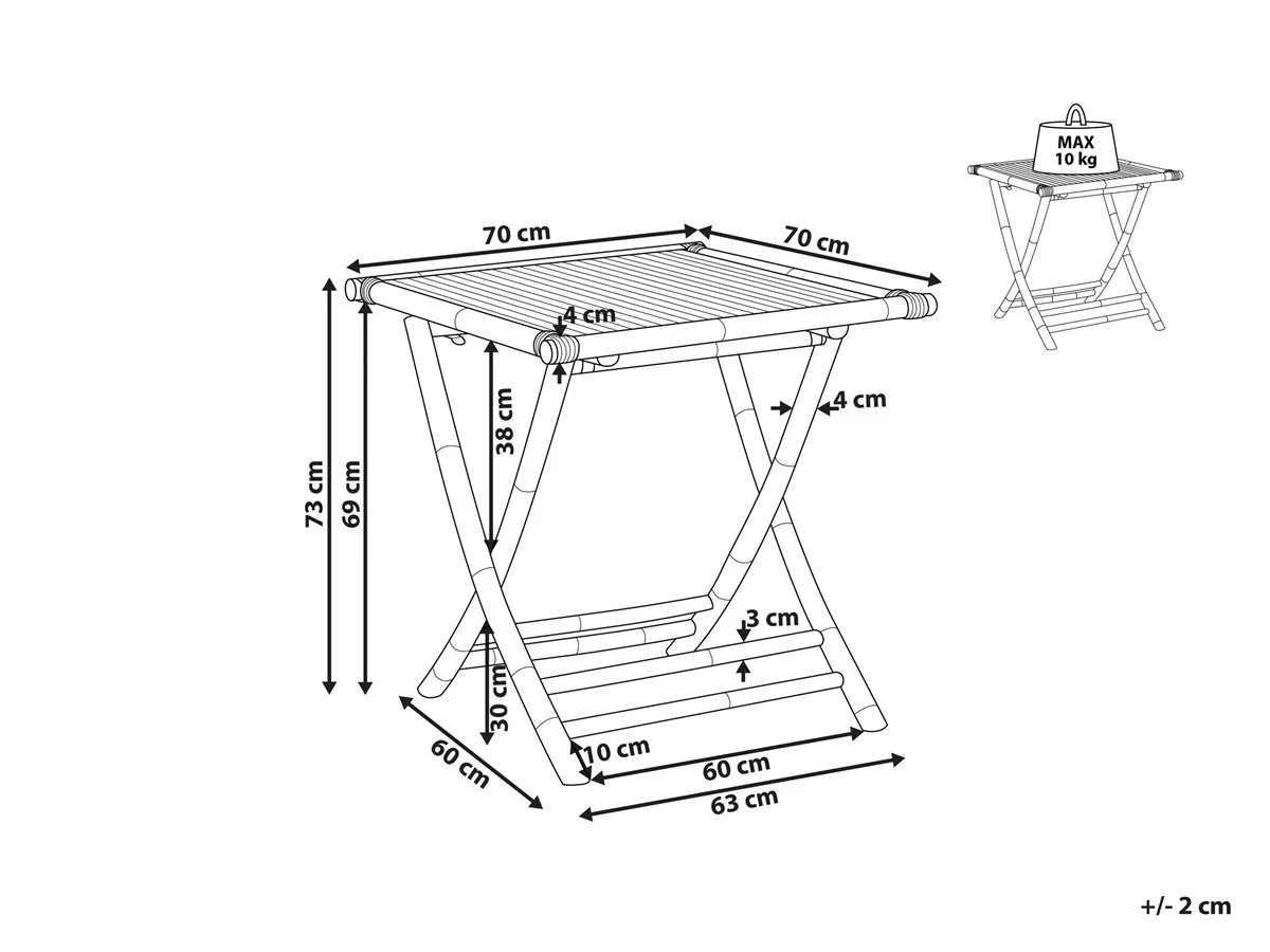 Mesa de exterior. Esta mesa de balcón es el lugar ideal para relajarse y disfrutar de una taza de té. Fabricada a partir de madera de bambú, combina bien en cualquier estilo decorativo boho o natural. La mesa es plegable, lo que facilita el almacenamiento y el transporte. Su funcionalidad permite el uso como mesa de noche decorativa o como soporte para plantas. Detalles: Tipo de Producto: Mesa de centro Estilo: Retro Color: Madera clara Tipo de material: Madera maciza Material principal: Madera de bambú Material de las patas: Madera maciza Material de la superficie: Madera maciza Forma: Cuadrada Dimensiones: Ancho: 70 cm Longitud: 70 cm Altura: 73 cm Peso: 9 kg Capacidad de peso: 150 kg La oferta incluye: 1 x Mesa de centro Ventajas: Perfecto para todo tipo de exterior, Solida estructura, Mantenimiento sencillo, Plegable, ahorra espacio, Materiales naturales Información de montaje: No requiere montaje Información adicional: Ten en cuenta que el producto es sensible a condiciones climáticas adversas, por lo que, cuando no esté en uso, debe ser almacenado en el interior o en un lugar cubierto. Texto de resistencia: Los muebles resistentes a los rayos UV muestran una mayor resistencia a la decoloración. Sin embargo, recomendamos que el producto se guarde en el interior cuando no esté en uso. Esto asegurará la máxima durabilidad de los muebles. Resistencia: Rayos UV Consejos de mantenimiento: Madera de bambú: 1.Antes del inicio o final de la temporada, pon un poco de sellador. Solo en lugares con sombra, que no estén ni húmedos ni mojados. Si las condiciones climatológicas son adversas, usa una funda protectora o guarda el mueble en el interior 2.Después de limpiar, frota con una esponja. Por último, seca con una toalla y añade a la madera una capa de cera o aceite 3.Trata las zonas enmohecidas de los muebles con aceite de limón 4.Con el paso del tiempo, la suciedad se puede acumular en la madera de bambú. Asegúrate de realizar una limpieza anual a fondo. Utiliza un cepillo suave y agua tibia con jabón neutro.