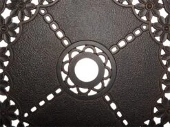Mesa de exterior. Aprovecha al máximo los cálidos días de verano y disfruta de la máxima comodidad gracias a esta mesa de barbacoa. Hecha de aluminio robusto, embellece cada terraza o balcón con un elegante acento vintage. La mesa viene con una parrilla incorporada que se puede cubrir con una tapa extraíble. Configúrala con sillas complementarias y disfruta de un lugar perfecto para cenar al aire libre. Detalles: Tipo de Producto: Mesa de jardín Estilo: Retro Color: Marrón Tonalidad: Marrón oscuro Tipo de material: Metal Material principal: Aluminio Material de la superficie: Metal Forma: Redonda Acabado: Pulido Dimensiones: Ancho: 105 cm Longitud: 105 cm Altura: 72 cm Peso: 35 kg Capacidad de peso: 150 kg La oferta incluye: 1 x Mesa Ventajas: Incluye el pozo de fuego , Diseño tradicional con un toque moderno, Pieza estable y robusta, Muy fácil de conservar, Resiste a todo tipo de clima Información de montaje: Requiere montaje completo. 20-40 min. Texto de resistencia: El producto es resistente al agua, lo que significa que no se dañará expuesto a la lluvia o en contacto con otros líquidos. Puede dejarlo al aire libre incluso durante fuertes lluvias o humedad. Durante la temporada de invierno es recomendable almacenar el producto en el interior o bajo una cubierta impermeable. Resistencia: Agua Consejos de mantenimiento: Aluminio: 1.Fuera de temporada, utilice una funda protectora o guarde los muebles en un lugar fresco y seco 2.Limpiar con agua jabonosa y detergentes suaves. Quitar el polvo con un paño suave.
