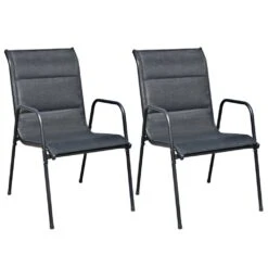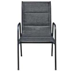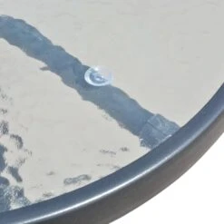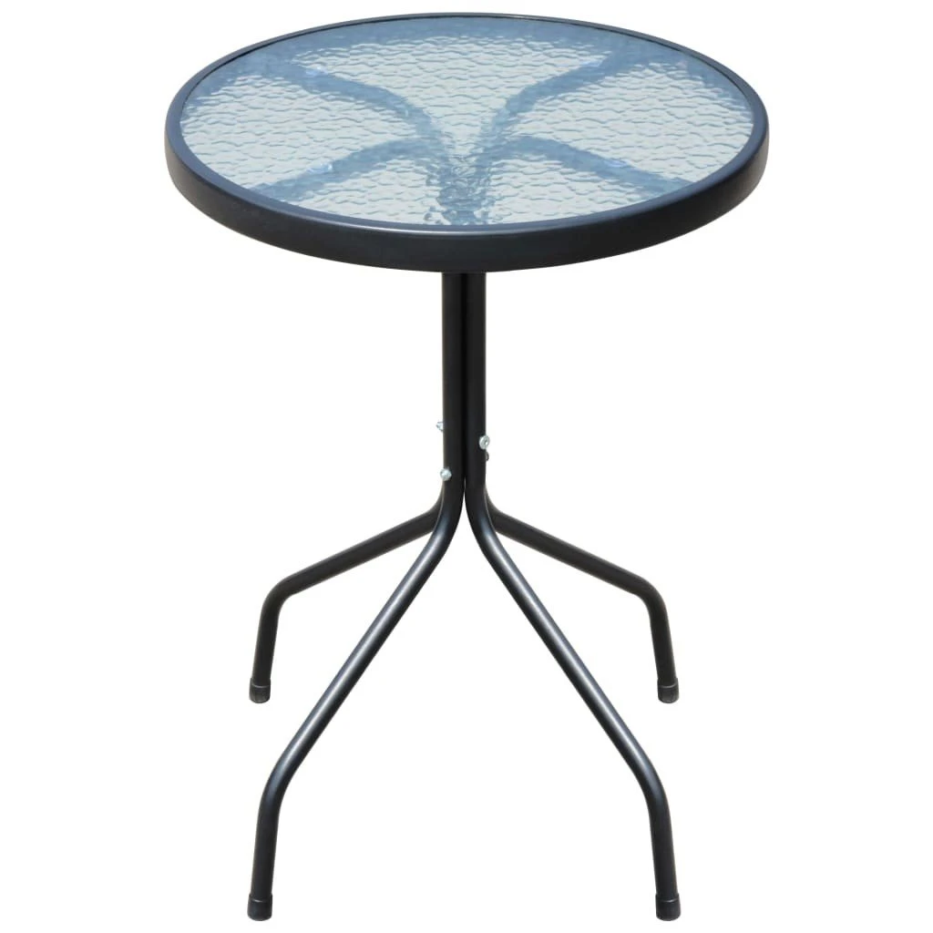 Este sofisticado conjunto de comedor para exterior se convertirá en el centro de atención de su jardín, patio o comedor. Las cómodas sillas son de acero con recubrimiento en polvo de gran calidad. Gracias a la firme tela de textilene con acolchado impermeable, nuestras sillas son muy cómodas, resistentes al agua y fáciles de limpiar. Las sillas son apilables para ahorrar espacio. La mesa tiene una superficie de 5 mm de grosor hecha de vidrio templado con textura ondulada, sobre la que puede colocar bebidas, aperitivos o elementos decorativos. También posee una robusta estructura de acero con recubrimiento en polvo que es duradera y fácil de mantener. El montaje es sencillo. La entrega incluye 1 mesa y 2 sillas de textilene. Nota: Le recomendamos que tape el mueble en condiciones de lluvia, nieve y heladas. Color de la mesa y las sillas: NegroMaterial de la mesa: Estructura de acero con recubrimiento en polvo + superficie de vidrio templadoMaterial de las sillas: Estructura de acero con recubrimiento en polvo + asiento y respaldo de textilene con acolchadoDimensiones de la mesa: 50 x 71 cm (diámetro x alturaDimensiones de la silla: 51 x 66 x 88 cm (ancho x profundo x altoAnchura de asiento: 50 cmProfundidad del asiento: 45 cmAltura del asiento desde el suelo: 40 cmAltura del reposabrazos desde el suelo: 59 cmSuperficie de vidrio de 5 mm de grosor con textura onduladaSillas apilablesFácil montajeLa entrega incluye 1 mesa y 2 sillasMaterial: Poliéster: 30%, PVC: 70%