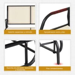 - – BALANCÍN BIPLAZA PARA EXTERIOR: Resistente a la intemperie es ideal para tu jardín, terraza o patio. Dondequiera que la instales y coloques, dará un toque cómodo, elegante y a la vez divertido – TEJIDO TRANSPIRABLE DE TEXTELINE: Su asiento resulta muy cómodo y reconfortante gracias a su diseño y tela transpirable. Es resistente al agua y a los rayos UV, y de secado rápido, ideal para los días calurosos de verano y por si nos sentamos mojados de la piscina en él – ESTRUCTURA ESTABLE Y RESISTENTE: Este banco balancín tiene un asiento y un respaldo amplios para que se sienten cómodamente dos personas. Construida con un marco metálico resistente a la oxidación y a la intemperie, puede soportar hasta 200 kg – REPOSABRAZOS CURVOS: Los reposabrazos curvos y lisos de esta silla mecedora de jardín son resistentes al calor, al desgaste y brindan un tacto suave. Ideales para apoyar tus brazos cómodamente mientras lees o tomas un refresco – MEDIDAS TOTALES: 120x70x85 cm (LxANxAL. Medidas del asiento: 114×47 cm (LxAN. Medidas del respaldo: 114×45 cm (LxAL. Capacidad máxima de carga: 200 kg
