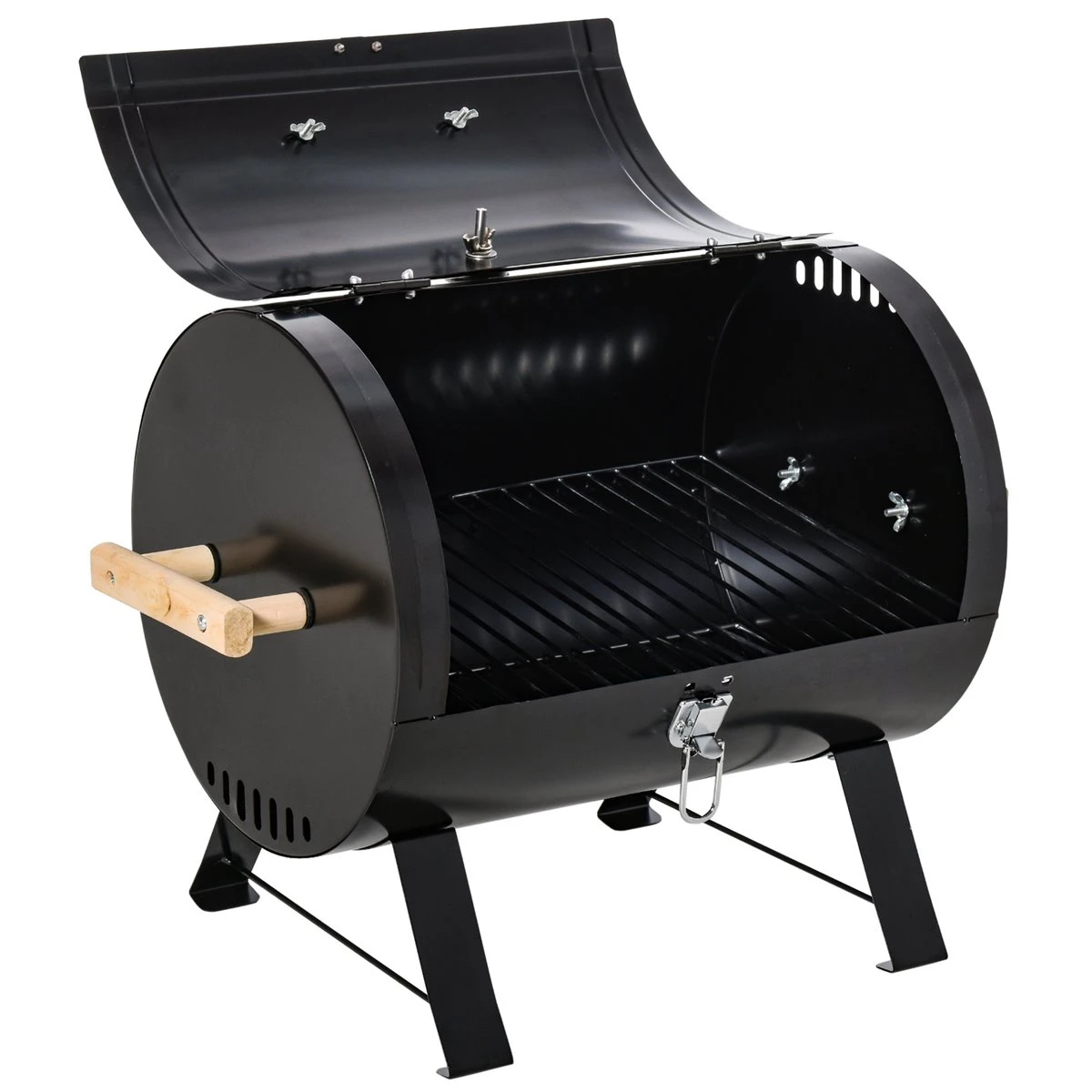 - – Cuerpo de la barbacoa cilíndrico con tapa con termómetro y cierre de seguridad