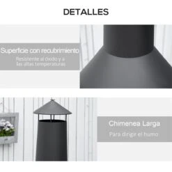 - – Chimenea larga para evacuar el humo de forma más eficiente y menos molesta