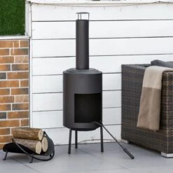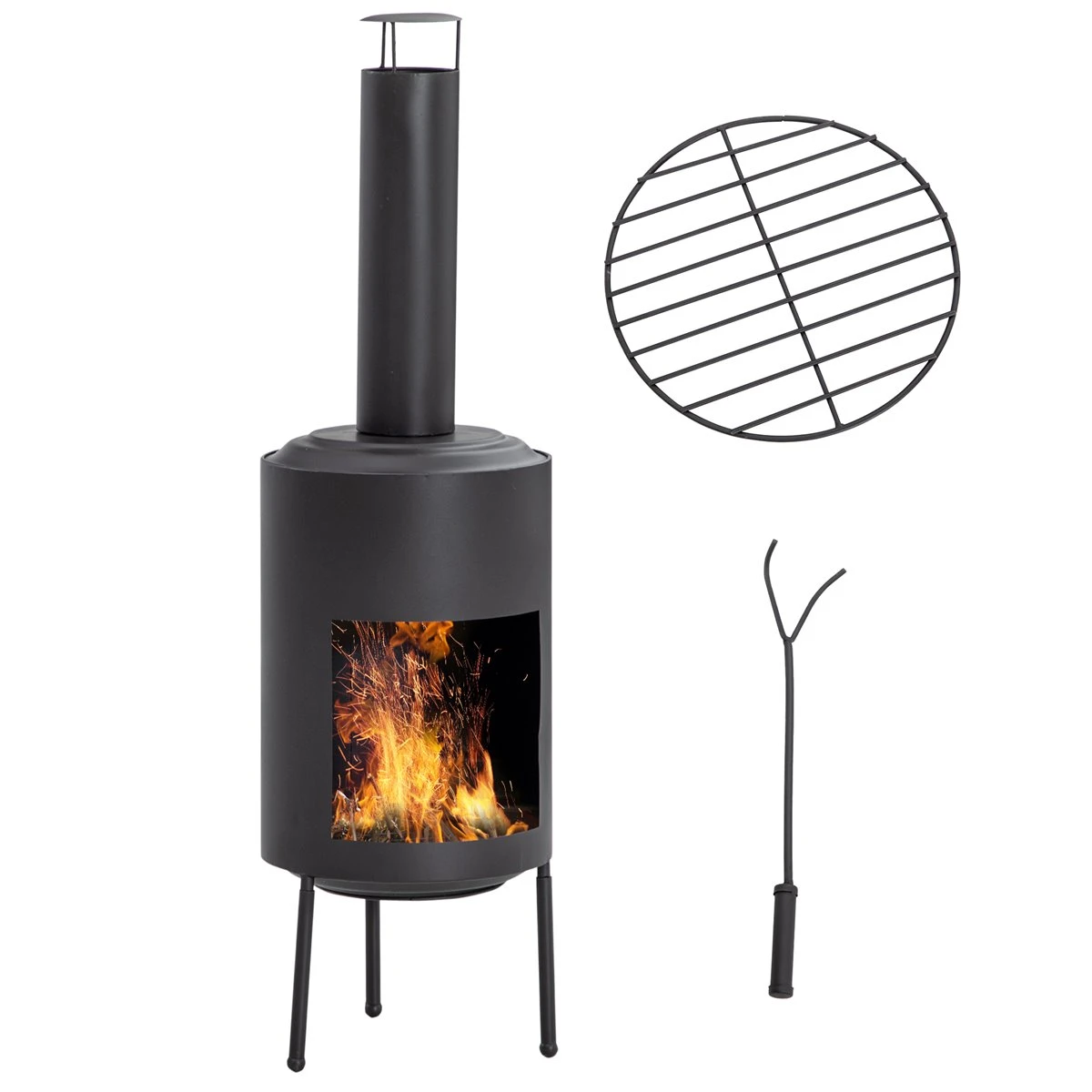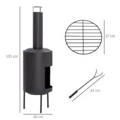 ¿Te gustan las noches al aire libre, pero el aire sigue siendo fresco? ¡Este brasero de exterior de Outsunny es lo que necesitas para no renunciar a tu terraza o patio! Fabricado con metal de calidad, es resistente a altas temperaturas y duradero en el tiempo. Tiene la chimenea larga, que es de gran ayuda para eliminar el humo. E incluye un atizador para remover la leña y mantener el fuego encendido ¡Desde hoy, disfruta de las tardes y noches al aire libre a una temperatura agradable! Características – Chimenea de exterior para calentarte en tu terraza o patio cuando el aire aún es frío – Una forma limpia y segura de hacer una fogata en tu jardín – El estilo de este brasero en forma de chimenea aporta un ambiente rústico – Chimenea larga para evacuar el humo de forma más eficiente y menos molesta – Incluye un atizador para mover la madera y cuidar del fuego con seguridad – Estructura metálica con pintura resistente a altas temperaturas y a la oxidación – Se requiere montaje Especificaciones – Color: negro – Material: metal – Medidas totales: Ø30×105 cm (DxAL – Medidas de la chimenea: Ø10×41 cm (DxAL – Altura de la salida de humo: 41 cm – Altura de las patas: 20 cm – Longitud del atizador: 43 cm – Peso neto: 3 kg – Referencia: 842-297V00BK
