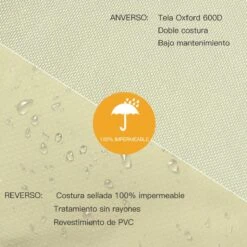 ¿Quieres alargar la vida de tu mobiliario exterior? Protégelo de las inclemencias del tiempo con esta funda para muebles. Fabricada con tela Oxford de alta calidad, esta cubierta es resistente a la decoloración, desgarros y al moho. El tejido está recubierto con PVC de modo que ofrece mayor resistencia al agua, la nieve y el polvo y por tanto, una mayor protección de tus objetos. Su diseño en color beige es muy elegante y combinará perfectamente con el resto de mobiliario. Es fácil de limpiar con un paño húmedo. ¡Es la solución ideal para cubrir los muebles de terraza!