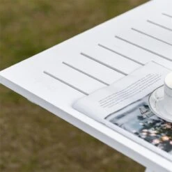 ¿Estás preparando tu terraza o jardín para la llegada del buen tiempo? ¿Tienes poco espacio, pero no quieres renunciar a tener una mesa de comedor en tu espacio exterior? Entonces esta mesa auxiliar de jardín de Outsunny te irá genial. Con estructura de madera en color blanco, combinará fácilmente con el resto de muebles y espacios. Y lo mejor de todo, es que tiene un agujero en el centro para colocar un parasol. Y cuando no la uses, pliégala y podrás guardarla sin ocupar apenas espacio.
