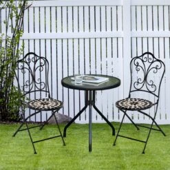 Si dispones de una mesa de exterior, pero te faltan las sillas, ¡no dejes de mirar este conjunto de sillas bistrós de Outsunny! Estas 2 sillas destacan por su diseño y funcionalidad. Con bonito respaldo de forja y asiento con bonito mosaico, cuentan con una estructura resistente de metal y gracias a su tamaño compacto y plegable podrás tenerlas en cualquier lugar. Son una opción perfecta para espacios pequeños, pero también para cualquier espacio al que quieras aportar un toque de elegancia.