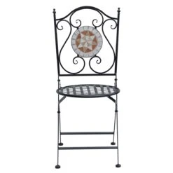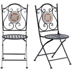 - – USO VERSÁTIL: Este juego de 2 sillas de diseño elegante, cuenta con un mosaico en el respaldo de las sillas. Es perfecta para patio, piscina, jardín u otros lugares. Le da un toque elegante y retro a su jardín. – DISEÑO ERGONÓMICO: El respaldo alto y ligeramente curvado te proporciona una máxima comodidad al sentarte. Las patas de los pies incorporan unas tapas redondas, para evitar que la silla se resbale. – DURADERO Y ESTABLE: Estructura de acero con recubrimiento en polvo negro. Resistente y duradero. – ESTRUCTURA PLEGABLE: Las sillas se pueden plegar para facilitar el transporte y ahorrar espacio cuando no las utilices. – MEDIDAS: Dimensión total: 39x50x92.5cm (LxANxAL. Tamaño del asiento: 39x39cm (LxAN. Altura del asiento: 49 cm. Capacidad máxima de carga: 120 kg.