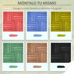 - – SISTEMA DE CLIC: Instala de forma rápida y fácil estas losetas que se acoplan unas con las otras mediante un sencillo sistema de encaje, para montarlas según tus necesidades y zona a cubrir en cuestión de minutos – DE MADERA: Hechas de madera maciza de calidad y sistema de anclaje de PVC, estas baldosas son resistentes a la intemperie para un uso prolongado. La madera texturizada de las losetas ofrece una superficie antideslizante – MÚLTIPLES USOS: Ideal para terrazas, pasillos, piscinas… o también para interiores, proporcionando una superficie segura para caminar al ser antideslizante. Las baldosas compuestas por lamas de madera separadas entre sí ofrecen un buen drenaje del agua. Bajo mantenimiento y fácil de limpiar con escoba y manguera de agua – PERSONALIZABLE: El sistema de clic de las 27 losetas de este set, permite una configuración personalizada del espacio que desees, usando solo las baldosas que sean necesarias, incluso juntando más de un set si es necesario – MEDIDAS TOTALES: Medidas de una balda: 30x30x2,5 cm (LxANxAL. Contenido del producto: 27 piezas. Superficie total: 2,5 m²